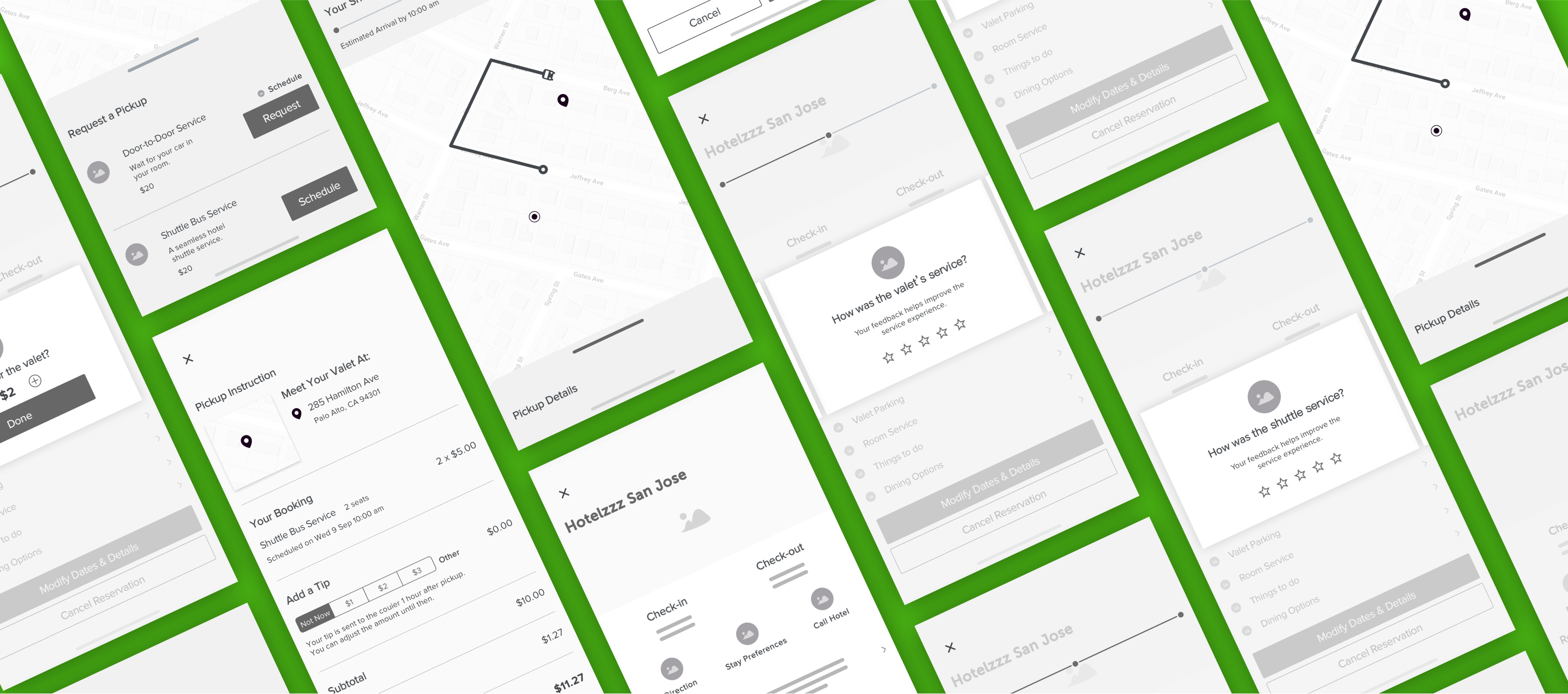 Houzz has decided to open a hotel chain, Hotelzzz, that specializes in creating a home-away-from-home experience for guests around the world. Hotelzzz mission is to delight guests with a great experience, delight guests with a great experience, and utilize technology to bring the industry into the digital world. I helped them developed a brand new valet parking experience and aligned with the mission of Hotelzzz.